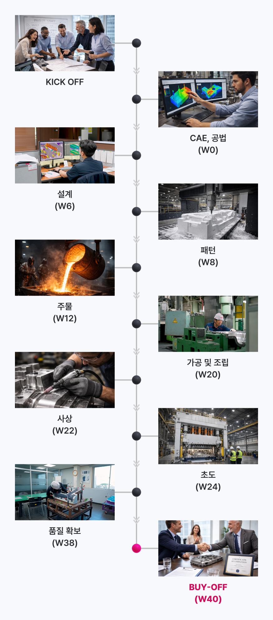 CAE 해석 기반의 최적 설계와 단계별 검증 시스템으로 최상의 품질을 약속합니다.